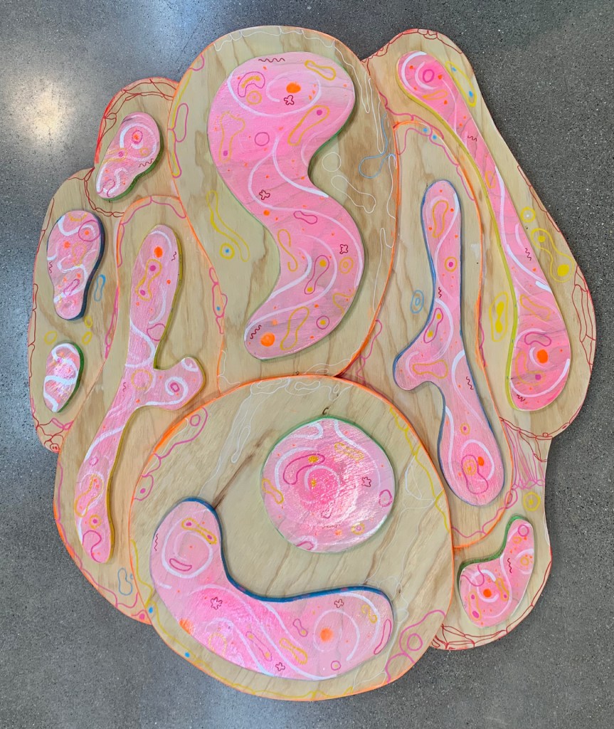 wood sculpture, acrylic and paint markers, 3ft x 5ft